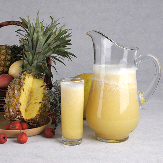 菠蘿汁產(chǎn)品有菠蘿原汁、菠蘿濃縮汁、菠蘿汁飲料等。菠蘿汁飲料較佳的配方為:菠蘿原汁20%~30%,糖13%左右,酸0.5%左右。