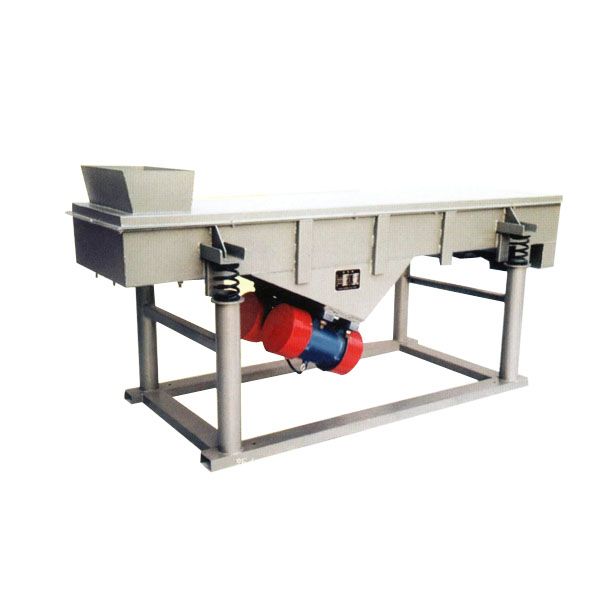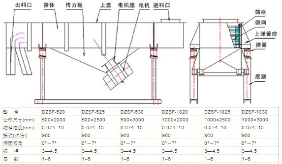 當(dāng)縱向安裝在篩體上的兩臺振動電機兩端的偏心塊便產(chǎn)生額定激振力,其產(chǎn)生在橫向的激振力相互抵銷,其縱向的激振力通過傳振體傳遞到整個篩面上,從而使篩面上的物料受其激振力而在篩網(wǎng)面上向出料口方向跳躍運動。小于篩孔的物料通過篩孔落到下層,大于篩孔的物料經(jīng)連續(xù)跳躍后,經(jīng)出料口流出,由于篩分過程合理,可將物料經(jīng)振動篩分級后,取得幾種不同顆粒的物料,完成物料的分級。